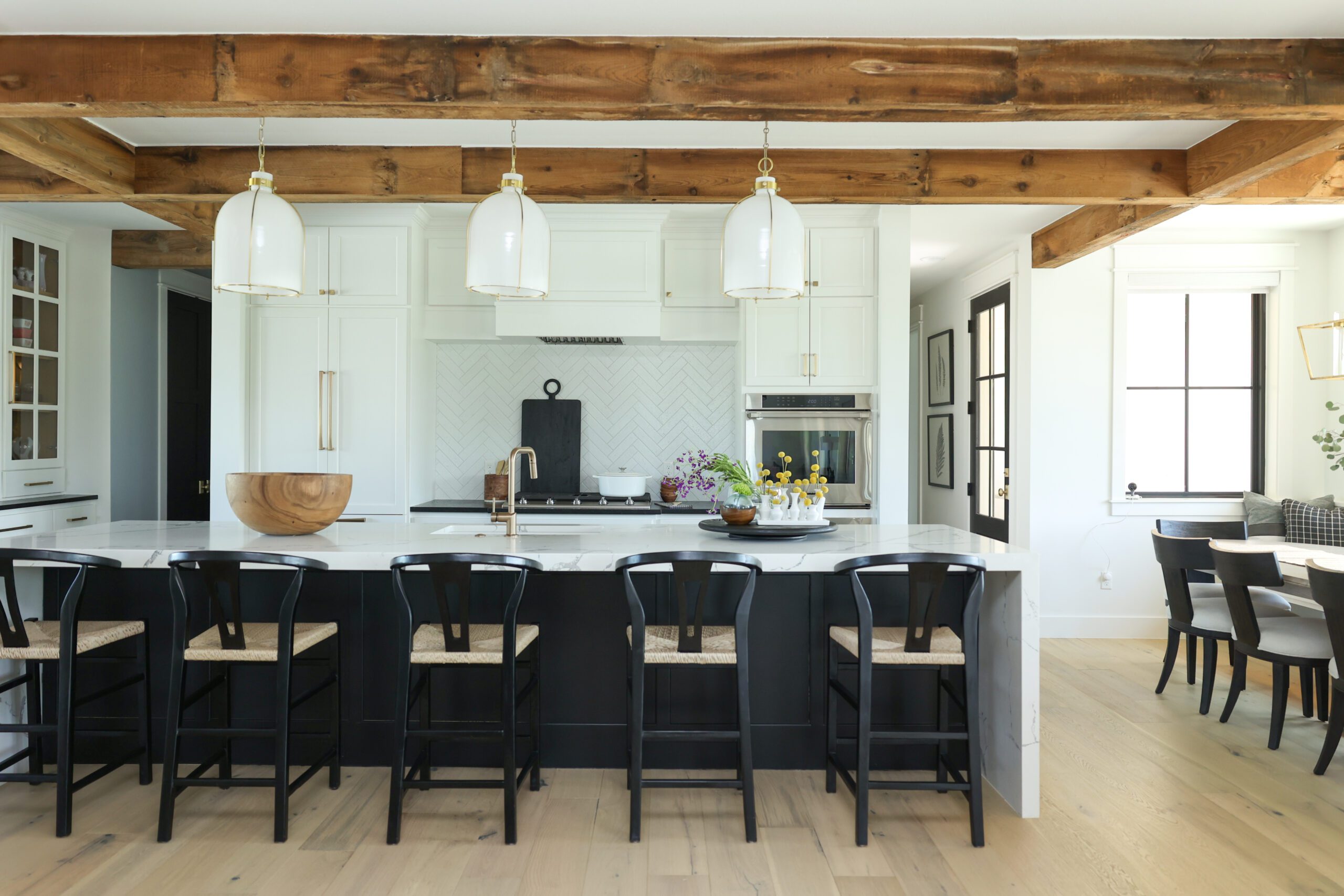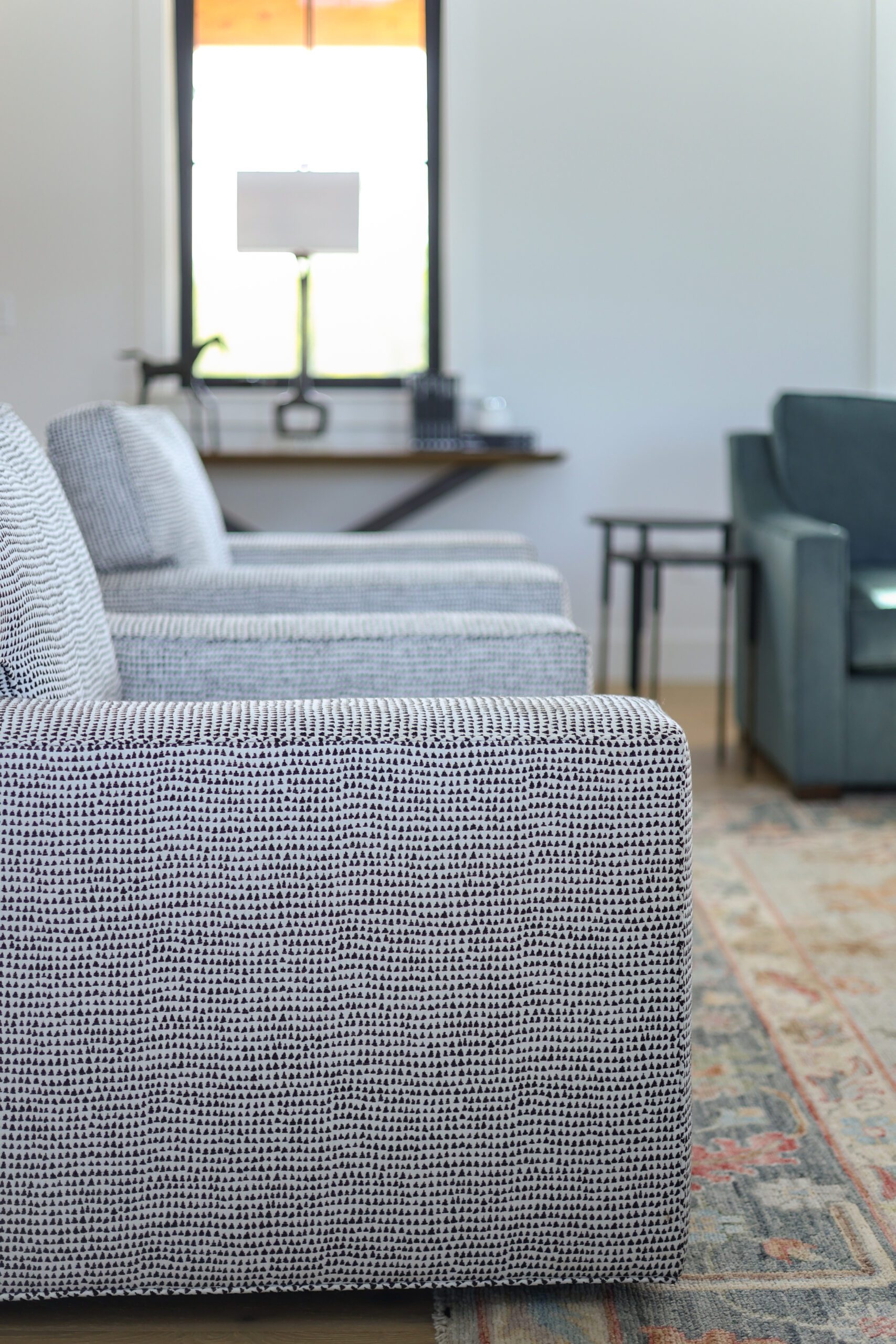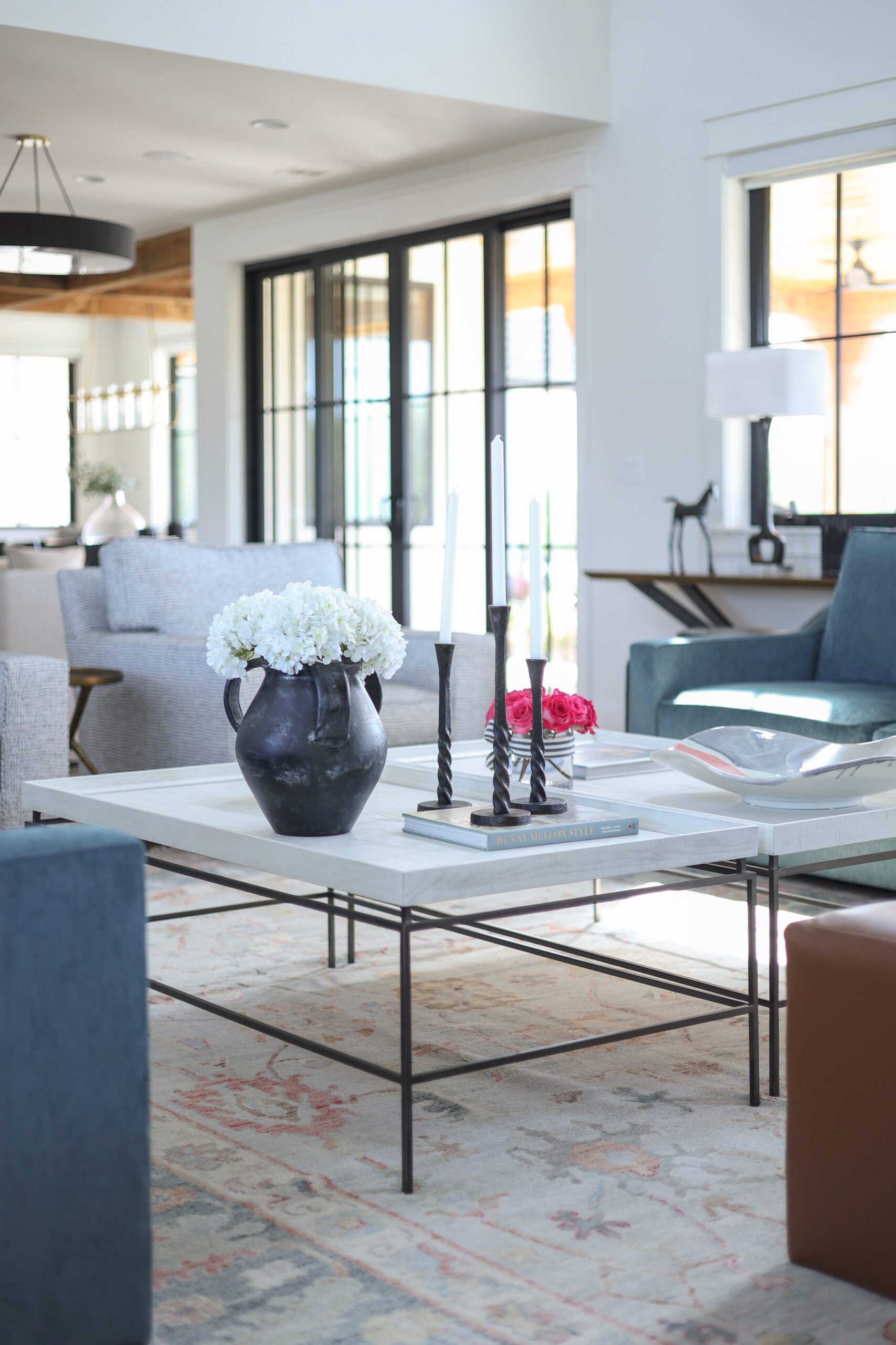 The house is about 4,000 square-feet and every room is large, so the furniture needed to match that scale. It also needed to accommodate plenty of people, which is why you will find so many seating opportunities throughout the open-concept kitchen, living and dining areas.