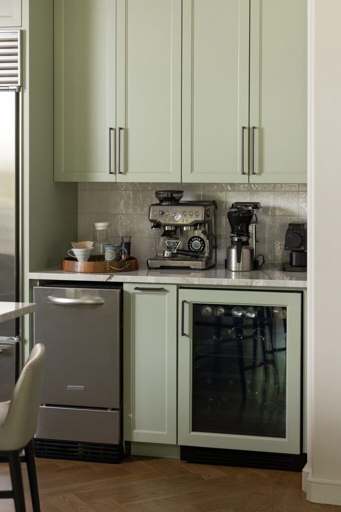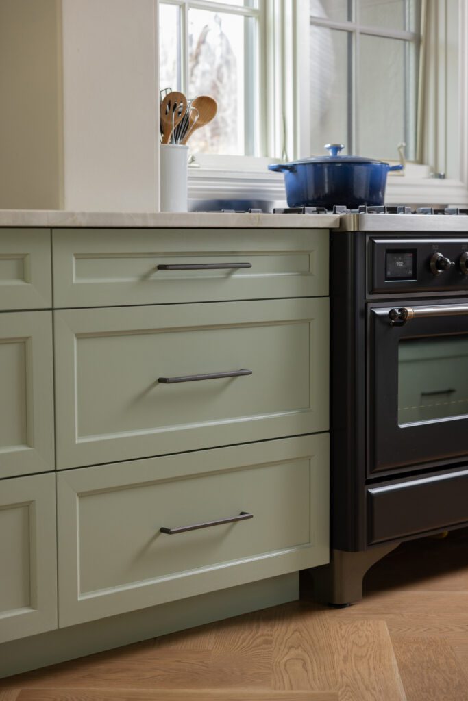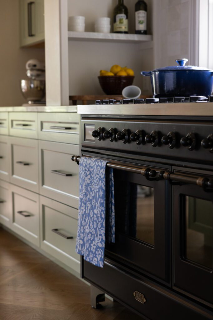 The showstopper of the space is the ILVE Majestic range, which is complemented by the sage green cabinetry.